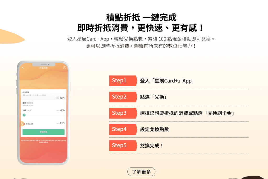 星展的現金積點折抵方式較複雜,需要單筆消費滿$500才可以折抵,另外積點需要滿100點並以倍數方式折抵,不能畸零折抵,使用上較受限。