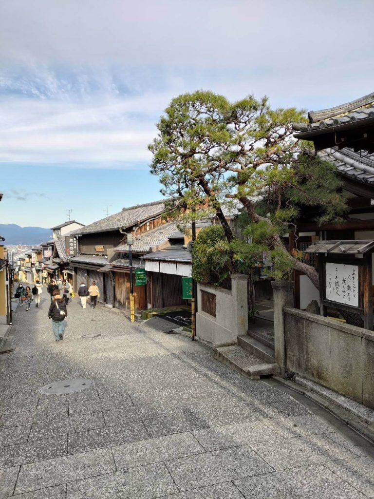 一早8點先衝清水寺,清水寺從京都車站搭公車100、110、206到五條坂或清水道,大約走路10-12分鐘就可以抵達清水寺,一進去先看到仁王門和三重塔,超級壯觀,冬天到清水寺有一種蕭瑟孤獨的感覺,一路走到音羽瀑布,選一個願望喝口水或洗個手,希望所求所願都能成真。2023年清水寺的地主神社維修中,下次要再去一次(握拳)